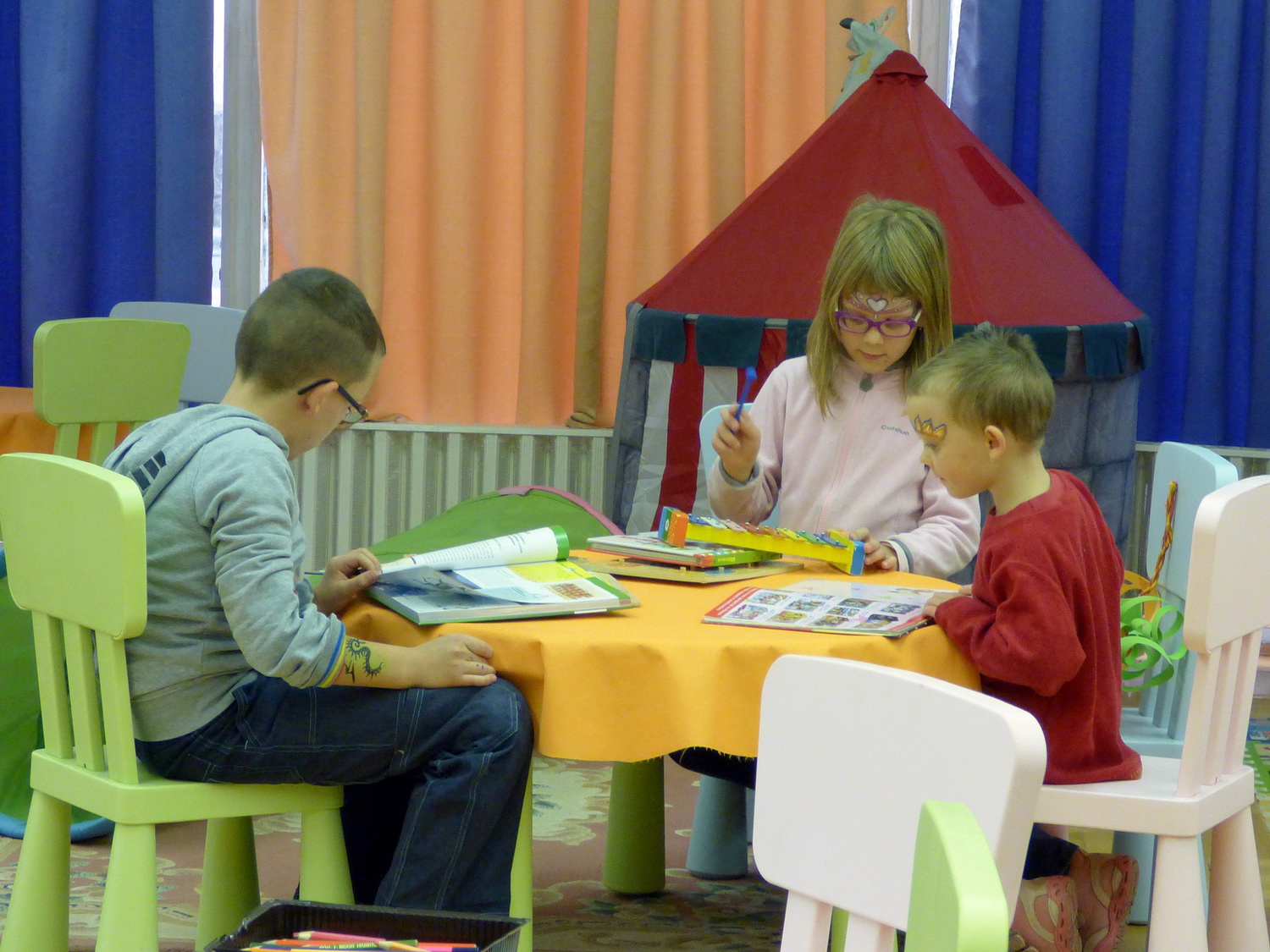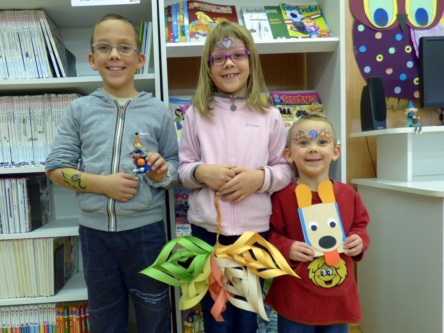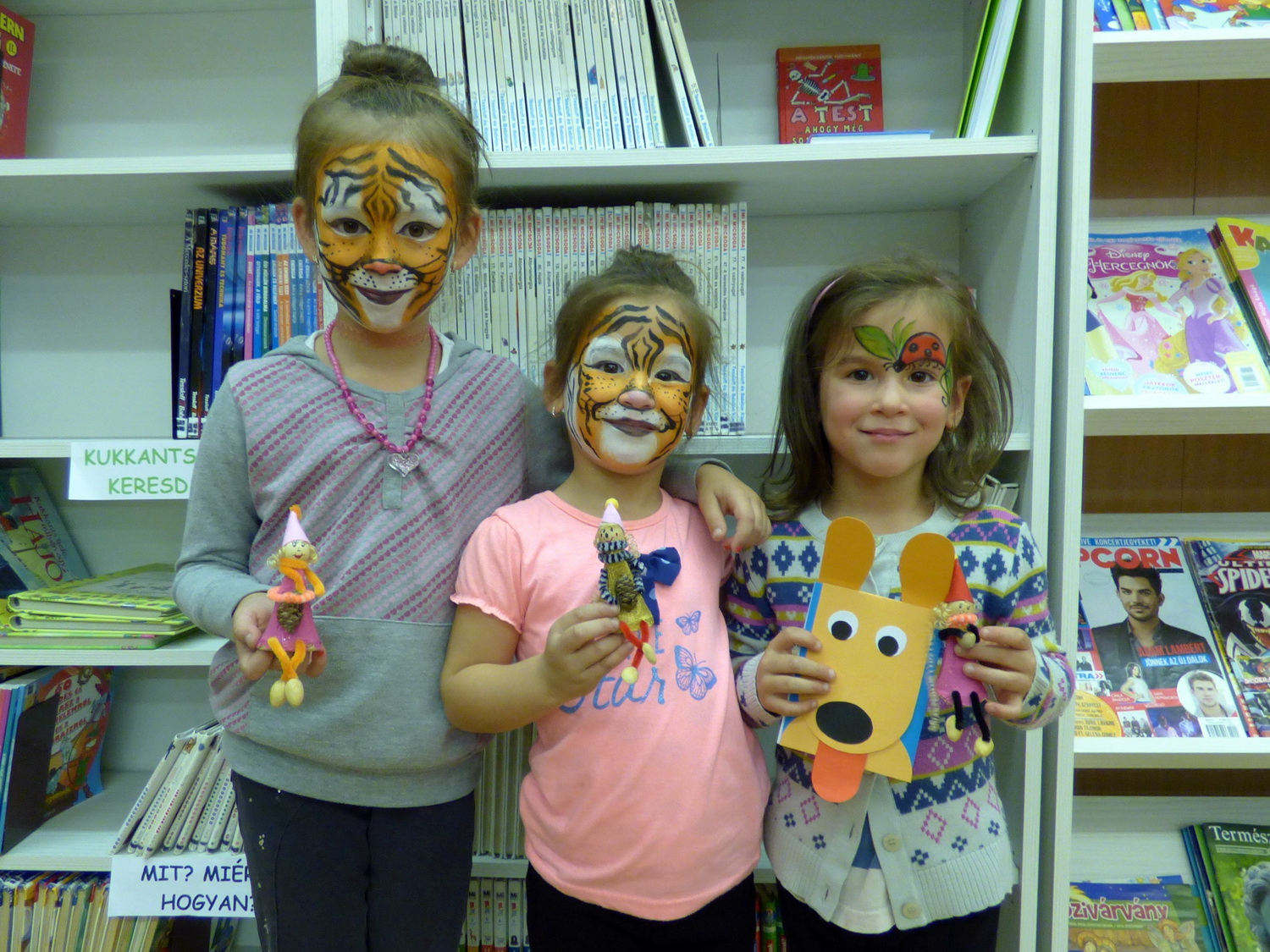 Sokan jöttek el Könyves vasárnap a gyermekkönyvtárba, ahol a kézműveskedés mellett az arcfestés kapta a főszerepet. Mindkét területen gyönyörű alkotások születtek. 🙂