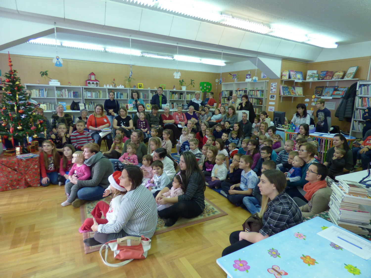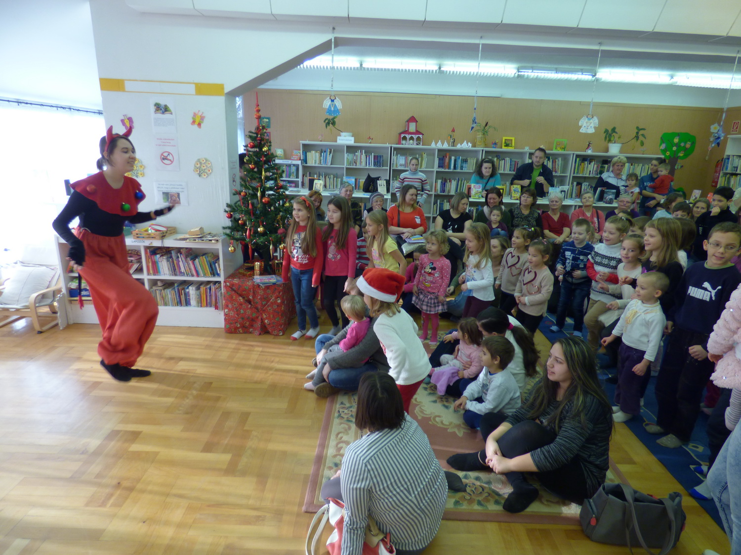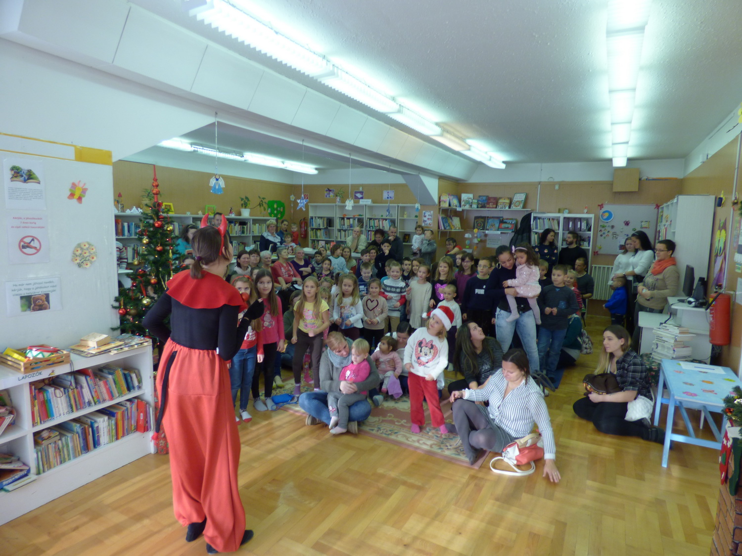 Mintegy 70 gyermek vett részt szüleik és nagyszüleik társaságában Mikulás ünnepségünkön a gyermekkönyvtárban december 2-án. A résztvevők együtt énekeltek és játszottak a Krampusszal, ezután érkezett meg a Mikulás. A gyerekek énekeltek, verset mondtak a Télapónak, majd megkapták ajándékaikat. 🙂