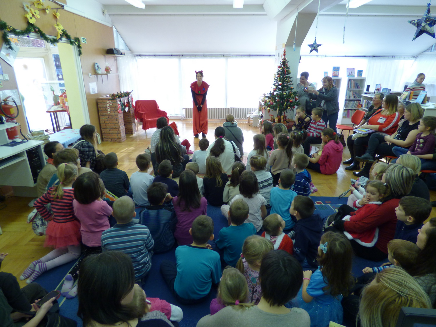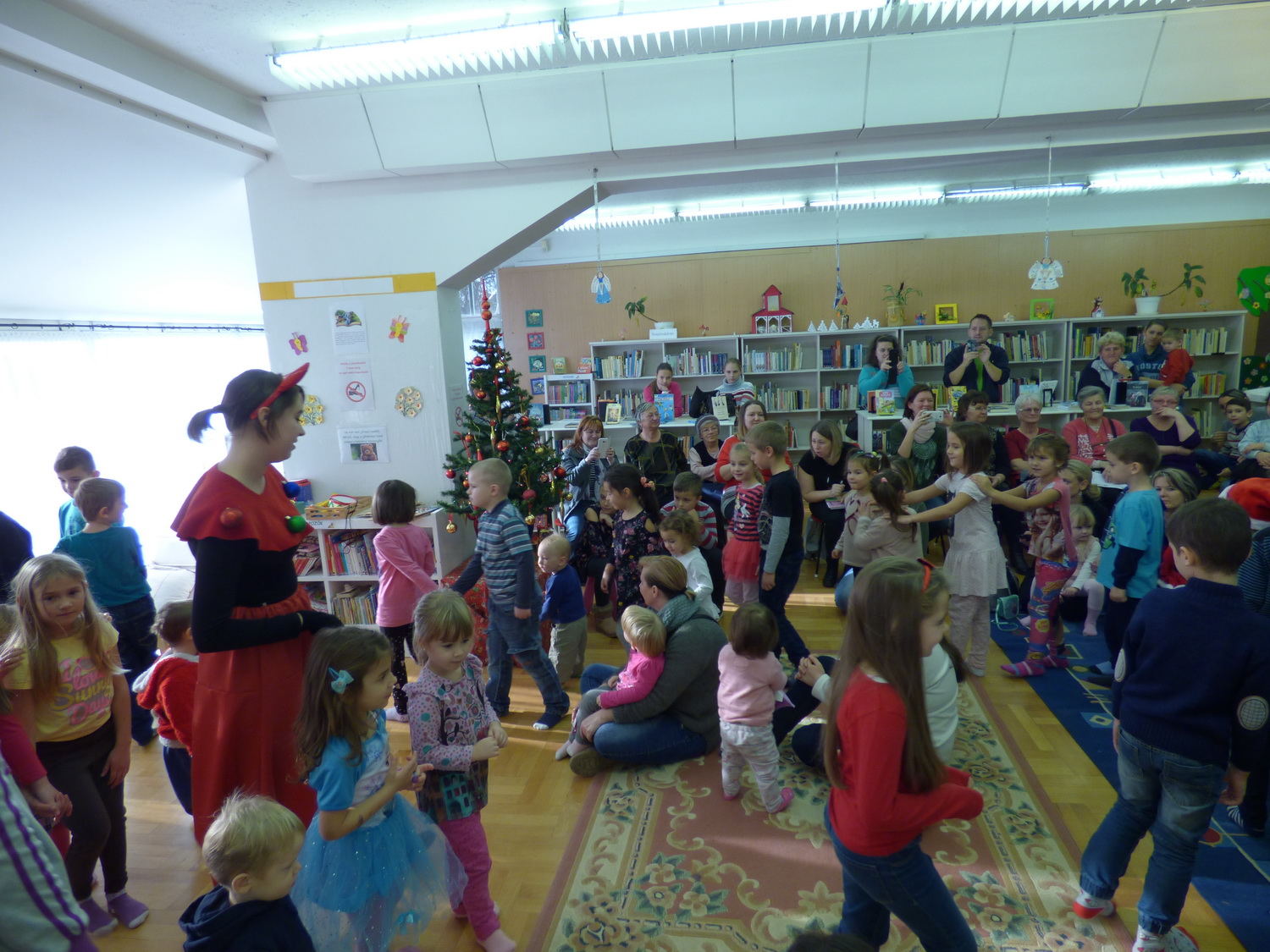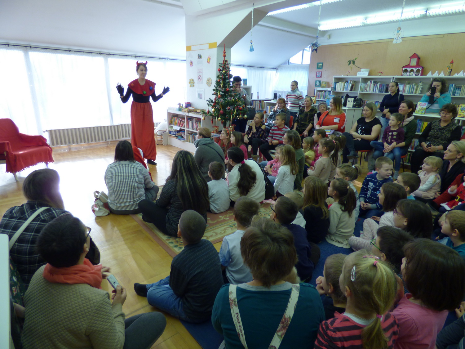 Mintegy 70 gyermek vett részt szüleik és nagyszüleik társaságában Mikulás ünnepségünkön a gyermekkönyvtárban december 2-án. A résztvevők együtt énekeltek és játszottak a Krampusszal, ezután érkezett meg a Mikulás. A gyerekek énekeltek, verset mondtak a Télapónak, majd megkapták ajándékaikat. 🙂