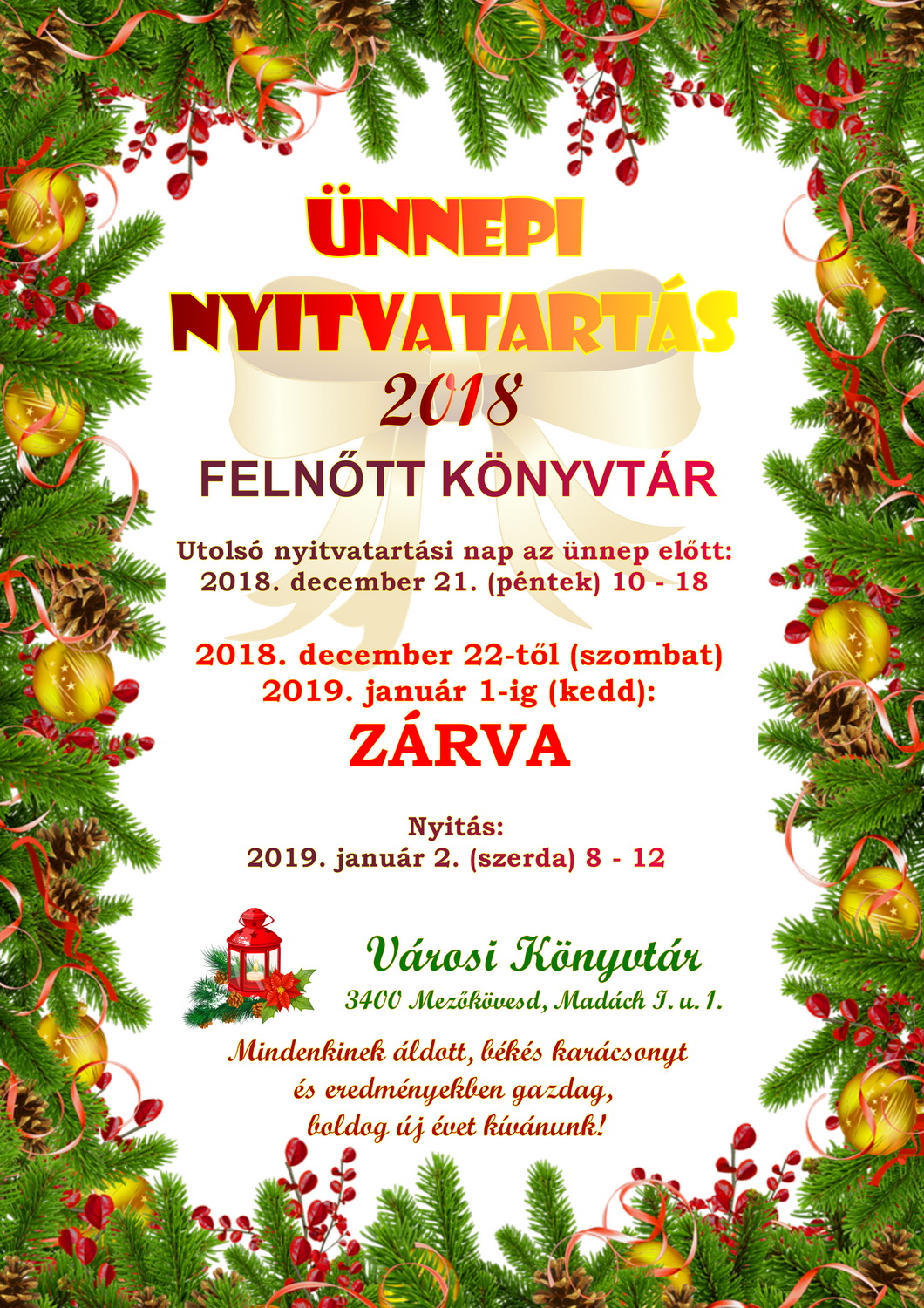 Utolsó nyitvatartási nap az ünnep előtt a felnőtt könyvtárban: