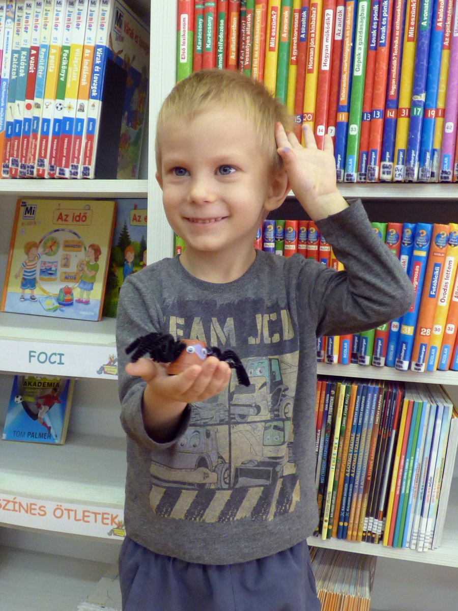 Kézműves szombat Városi Könyvtár Október 26-án, a szombati kézműves foglalkozáson a két dzsinnlányt készíthették el a gyerekek, valamint cserépből és zseníliadrótból pókok születtek.