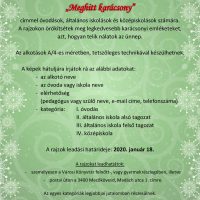 Olvasd tovább →Rajzpályázatot hirdetünk „Meghitt karácsony” címmel óvodások, általános iskolások és középiskolások számára. Leadási határideje: 2020. január 18.