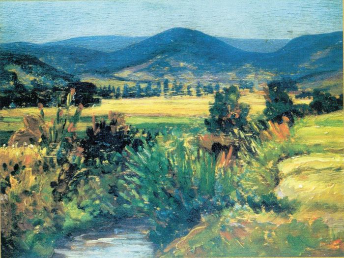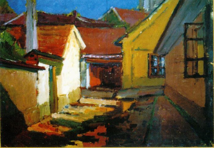 His airy and prospective landscapes has raised the ancient hun countrysides, the Danube Bend, the picturesque Lake Balaton to the fame of art. The peculiar air of the dewy hills of Zebegény and Keszthely and their colourful houses are vividly vibrating on his canvas.