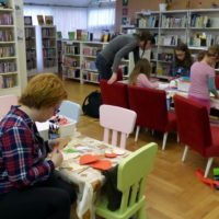 Beindult a húsvéti készülődés a gyermekkönyvtárban: nyuszis asztaldíszt és cserépbe pottyant nyuszit készítettek a gyerekek a hétvégén.